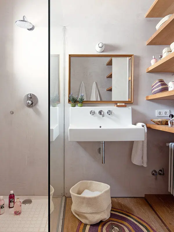 Baie dintr-un apartament de 55 mp intreaga amenajare: https://povesteacasei.ro/design-functional-de-exceptie-pentru-un-apartament-de-55mp/
