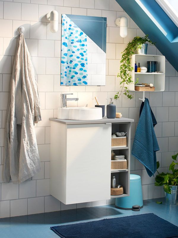 Daca iti doresti mai mult spatiu la nivelul pardoselii, inlocuieste dulapul de sub lavoar cu unul suspendat in care sa integrezi si oglinda. Vei avea astfel un spatiu multifunctional si o baie mai degajata. In cazul in care acest dulap nu este suficient, poti adauga un corp suspendat, cu sertare sau usi imediat sub lavoar. Foloseste-te si de pereti pentru depozitare, integrand cateva rafturi sau polite.