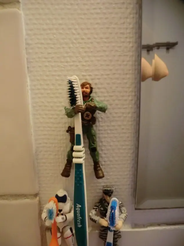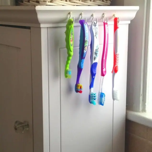 Suport pentru periutele de dinti din carlige de rufe
