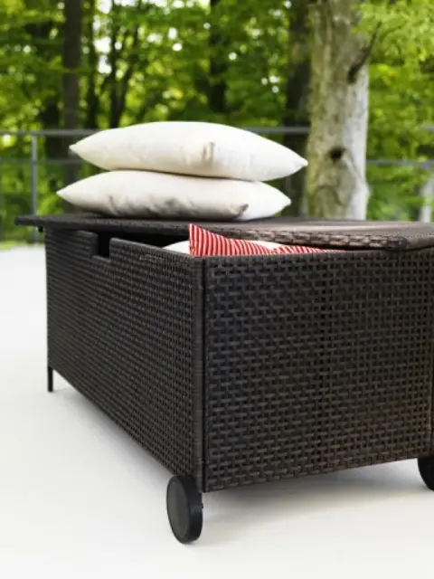 transforma masuta de pe balcon intr-o cutie de depozitare. In loc sa ocupi spatiu inutil cu o masuta clasica, foloseste-te de o cutie inalta in care sa depozitezi orice ai nevoie si, dupa ce ii pui capacul sa devina o masuta perfect functionala.