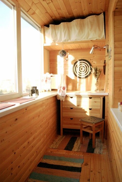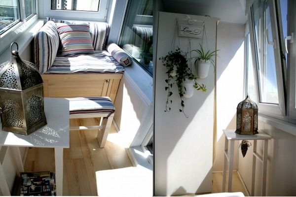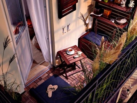 construieste-ti lazi de depozitare pe dimensiunea balconului pentru a folosi tot spatiul pe care il ai la dispozitie. Imbraca lazile cu o husa si pune deasupra si niste pernute pentru a avea un loc unde sa iti bei cafeaua.