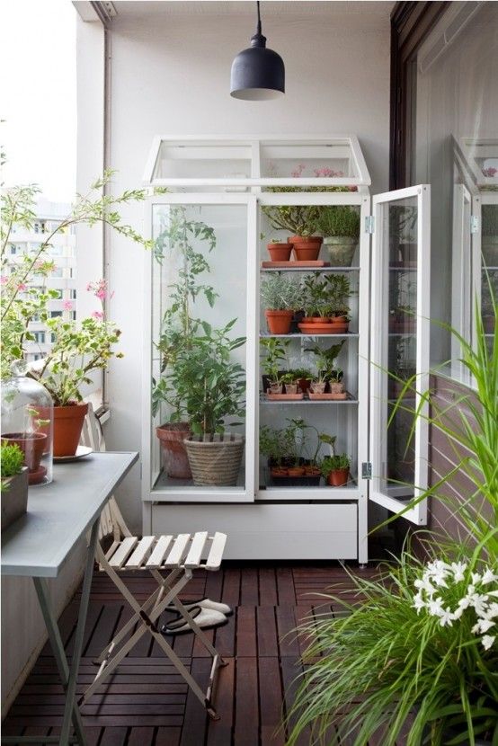 creeaza un spatiu izolat termic pentru plantele carora nu le place iarna. compartimenateaza o parte din balcon cu o usa de sticla. In interiorul cubului format tine poti tine florile ca intr-o mini sera de apartament pana cand afara va deveni destul de cald incat sa le poti scoate din nou la soare.