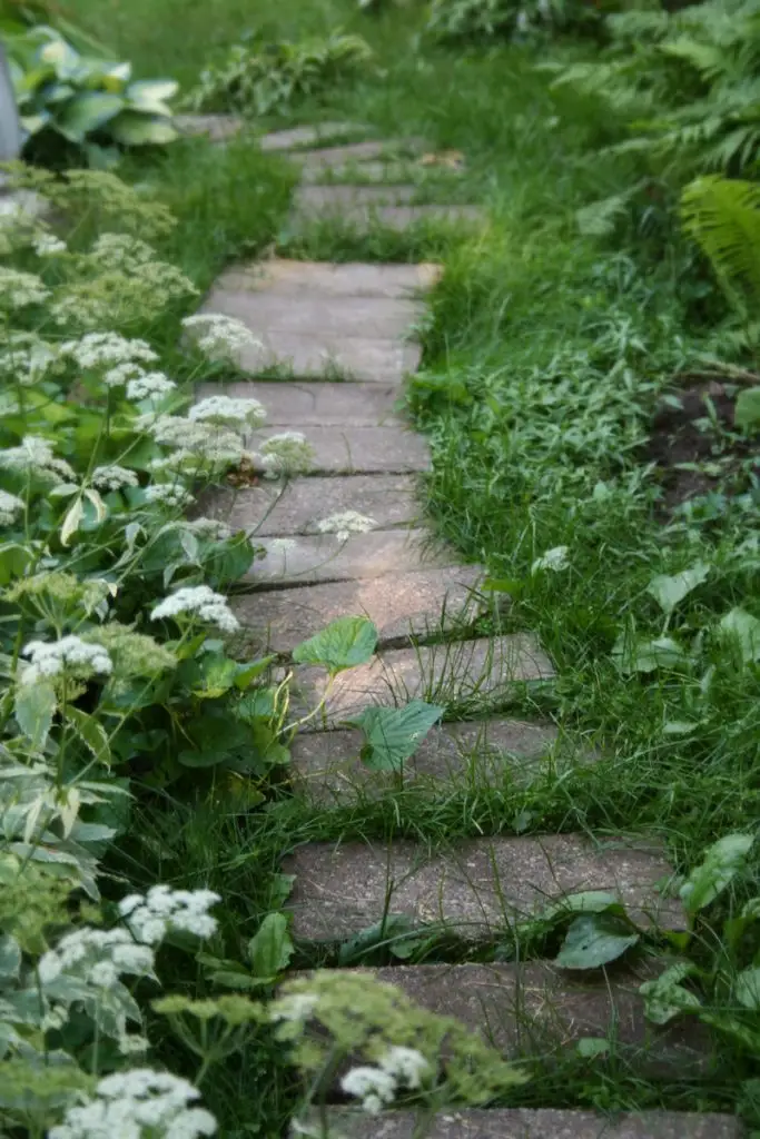Montarea dalelor la intervale regulate printre care se seamana gazon sau iarba poate fi o solutie foarte ingenioasa. Cand iarba va creste culoarea acesteia va contrasta intr-un mod foarte placut cu nuanta cimentului.