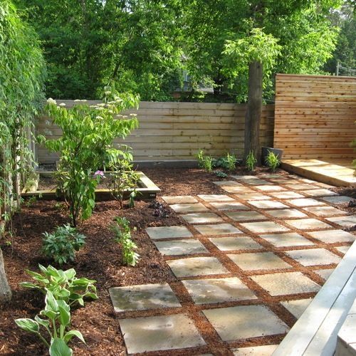 Scandurile din lemn pot fi dispuse pe orizontala si asezate la o distanta egala una de cealalta iar pavajul creat ofera o priveliste foarte placuta.
