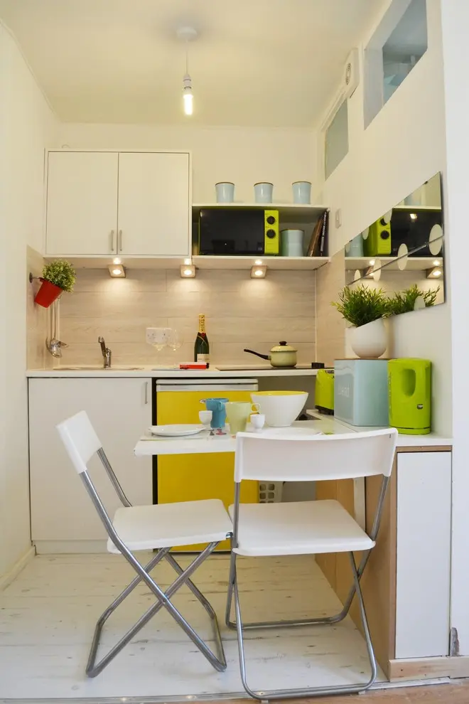 Foloseste tonuri de bej deschise si alb pentru bucatariile mici, iar pentru cele mai luminoase si mai spatioase poti miza si pe accente mai intense, de rosu, albastru sau verde. Echilibreaza decorul pornind de jos in sus. Pentru pardoseala poti folosi un bej inchis sau maro sub forma parchetului sau gresiei si apoi o tranzitie usoara spre o zona superioara mai luminoasa, in nuante mai deschise.
