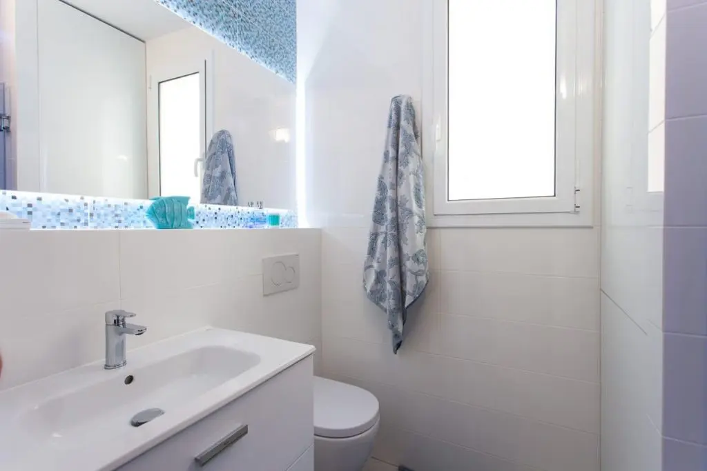 Primul model de amenajare benzile L ED din spatele oglinzii aduc un plus de lumina pentru baie