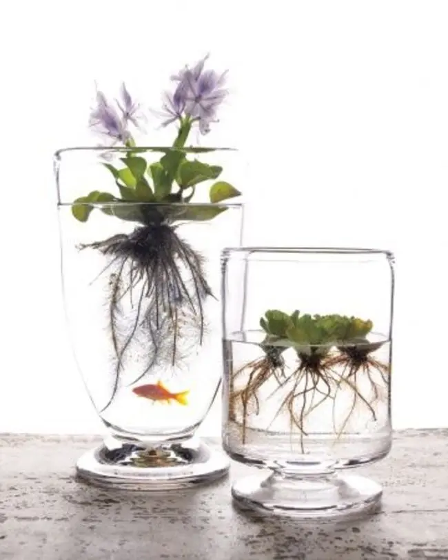 20. Un pahar de apa de dimensiuni mai mari poate fi folosit atat ca acvariu pentru un pestisor cat si ca ghiveci pentru un nufar.