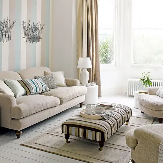 Si dungile pot constitui un detaliu pe care sa mizezi intr-un decor neutru; poate fi un tapet cu un model in dungi, creand astfel un perete-accent. Din nou, dungile se pot regasi si pe tapiteria unui otoman sau a pernelor decorative pentru o coerenta a amenajarii.