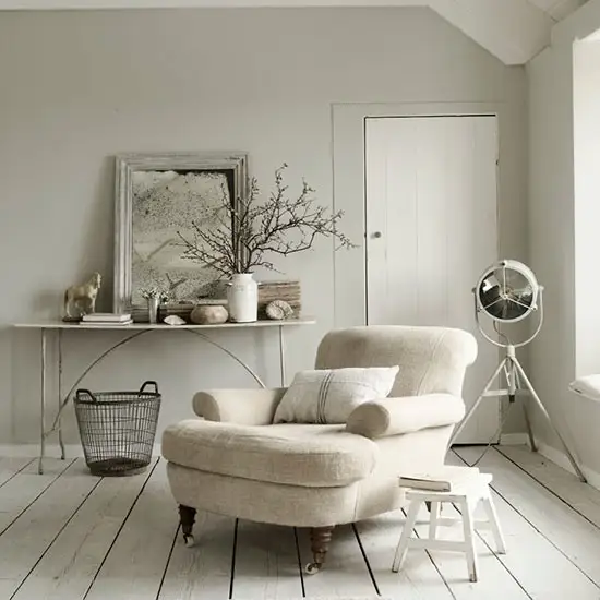 Un scaun sau un fotoliu cu un design deosebit va fi piesa de rezistenta intr-un decor neutru. Piesele antichizate de mobilier sau vintage se regasesc deseori in astfel de livinguri pentru a le permite sa straluceasca prin valoarea lor estetica implicita. Si obiectele de arta sau cele de colectie intra in aceasta categorie.