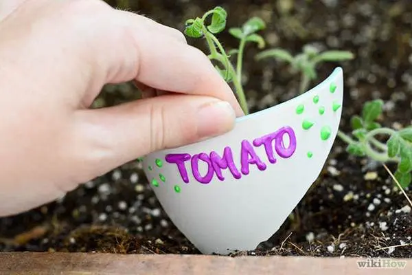 Foloseste cioburile pentru a marca numele plantelor din gradina