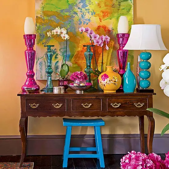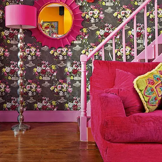 Hol de intrare roz cu bijuterii ornamentale pentru un design interior reusit