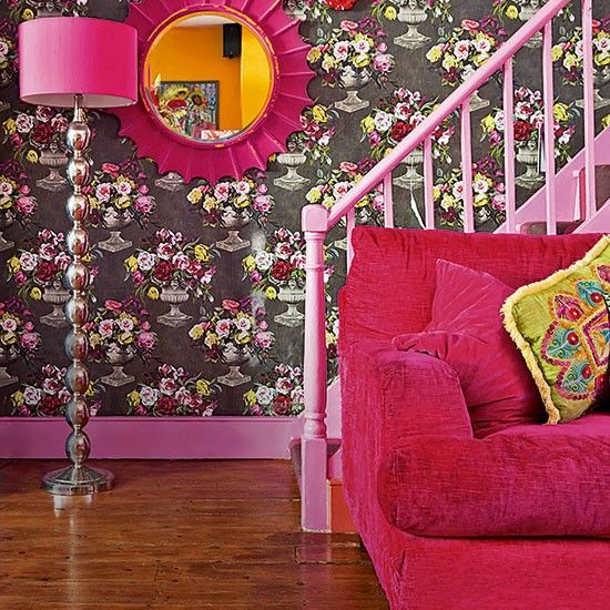Rozul si galbenul fac un mix reusit pentru amenajarea holului de la intrare
