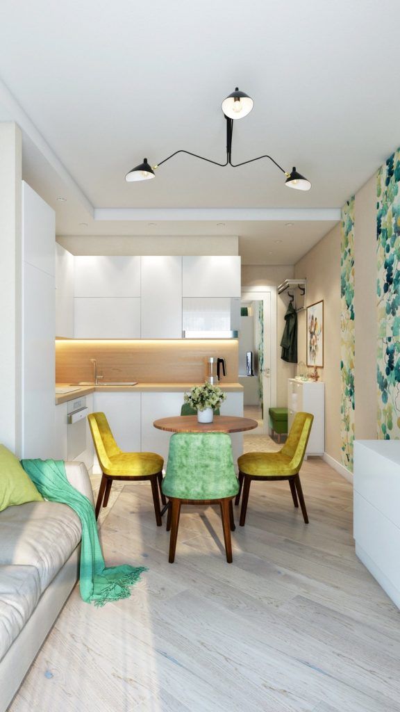 Desi greu de imaginat, spatiul de 22 metri patrati contine o zona de living, una de dining ce poate fi folosita si ca birou, bucatarie si baie si nu numai ca ele exista, dar se inlatuiesc armonios.
