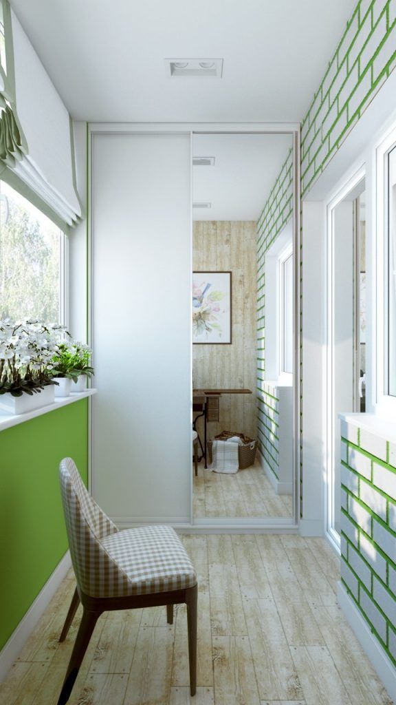 Surprinzator este balconul, care in mod normal ar fi fost integrat in camera pentru un plus de spatiu. Aici, designerul l-a lasat de sine statator, decorandu-l intr-un mod original. Accentele de verde incanta privirea. Ingenios, felul cum caramida originala a fost pastrata dar vopsita in alb, iar spatiile dintre ele vopsite cu verde. Atat pardoseala cat si unul din peretii laterali ai balconului au fost placati cu placi de parchet. Masina de cusut cu un aer vintage este piesa de rezistenta a amenajarii, aici fiind de fapt locul de pus in practica hobby-ul proprietarei. Nu lipsesc plantele pe pervaz. Avem chiar si un dulap cu usi glisante incastrat in perete pentru un plus de depozitare.