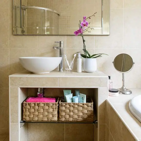Intrucat vorbim de un spatiu mic, este necesar sa pastrezi mereu ordinea si lucrurile sa fie bine organizate. De aceea, tipul de depozitare si solutiile pe care le vei alege sunt importante. Stim ca vei dori sa introduci cat mai multe lucruri in baie, dar tine cont de faptul ca unele cosmetice sa deterioreaza in spatiul umed al baii, iar produsele de curatat sunt toxice si ar fi bine sa fie tinute intr-un alt loc. Daca alegi sa instalezi masina de spalat rufe in baie, atunci poti aseza un dulap mic deasupra ei pentru detergenti si balsam. Poti opta si pentru etajere sau polite care sa preia o parte din depozitare sau poti rezuma totul la 2-3 sertare mai adanci ale lavoarului.