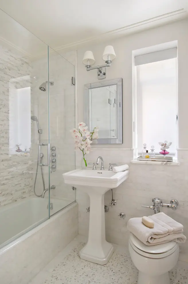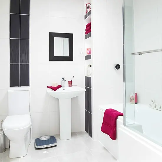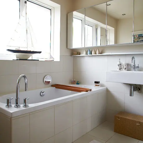 Cromatica neutra, pornind de la alb pana la crem si bej sau chiar griuri in tonuri deschise, este ceea ce se recomanda pentru a spori ideea de spatialitate intr-o baie. Pentru un plus de dramatism, poti incerca sa adaugi un perete-accent intr-o culoare mai inchisa care va crea profunzime si adauga un strop de eleganta decorului. Pentru cei care prefera aceasta varianta, este important sa asigurati un iluminat adecvat astfel incat tot spatiul baii sa fie pus in valoare. Am detaliat in acest articoldespre iluminarea corecta a unei bai.