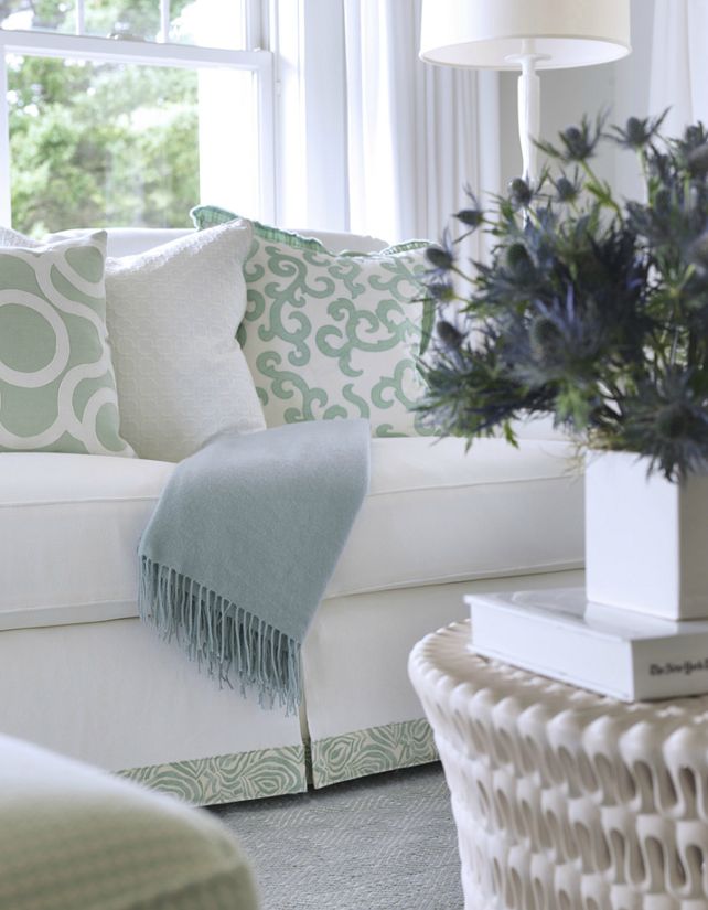 O alta modalitate de a mixa pernele este alegerea acestora in functie de fondul pe care sunt printate. De exemplu, combina perne cu diferite printuri, dar care au acelsi fond alb. Din nou, acorda atentie varietatii de printuri, tocmai aceasta va scoate in evidenta elementul care leaga modelele.