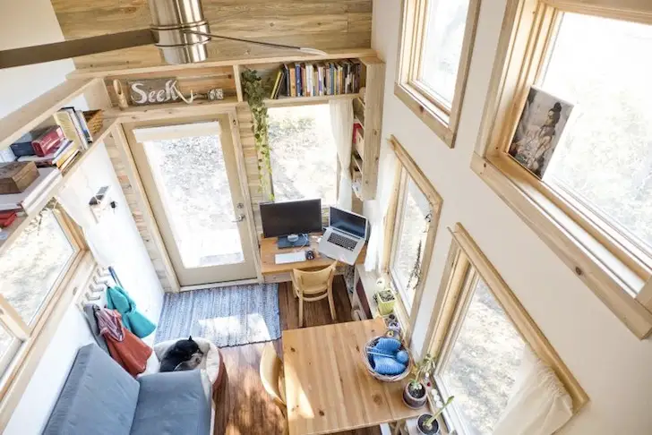 Atuurile unei case atat de mici constau in confortul si circulatia aerului care se realizeaza in intreg spatiul, datorita mobilierului practic din lemn si a ferestrelor ample.