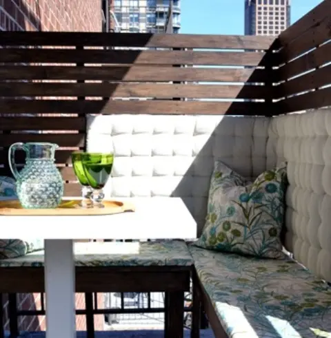 In ceea ce priveste mobilierul, tot marimea balconului va fi cea care va decide pentru ce veti opta. Daca spatiul este foarte mic, alegeti o perna mare, decorativa pe care sa o folositi pe post de sezut. Altfel, puteti incerca o masuta mica, cu unul sau doua scaune pliante, care se pot si agata de un perete al balconului atunci cand sunt stranse (veti putea vedea in galerie cat de interesante si practice sunt astfel de modele). Daca va doriti sa si depozitati diverse, optati pentru o lada (poate fi una cu aspect vintage) pe care sa o amenajati ca loc de sezut si personalizata cu diferite perne decorative pentru confort. In spatele lazii, ati putea sa placati peretele cu lemn reciclat pentru a obtine un decor mai deosebit.