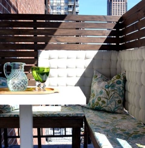 In ceea ce priveste mobilierul, tot marimea balconului va fi cea care va decide pentru ce veti opta. Daca spatiul este foarte mic, alegeti o perna mare, decorativa pe care sa o folositi pe post de sezut. Altfel, puteti incerca o masuta mica, cu unul sau doua scaune pliante, care se pot si agata de un perete al balconului atunci cand sunt stranse (veti putea vedea in galerie cat de interesante si practice sunt astfel de modele). Daca va doriti sa si depozitati diverse, optati pentru o lada (poate fi una cu aspect vintage) pe care sa o amenajati ca loc de sezut si personalizata cu diferite perne decorative pentru confort. In spatele lazii, ati putea sa placati peretele cu lemn reciclat pentru a obtine un decor mai deosebit.