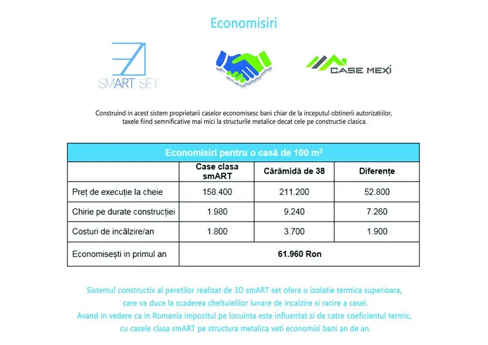 Coeficientul termic al constructiilor din clasa sm AR T aproape ca intra in categoria caselor pasive (coeficientul Lambda este de 0.169 w/m2k cu peste 45% mai bun decat sistemul clasic);