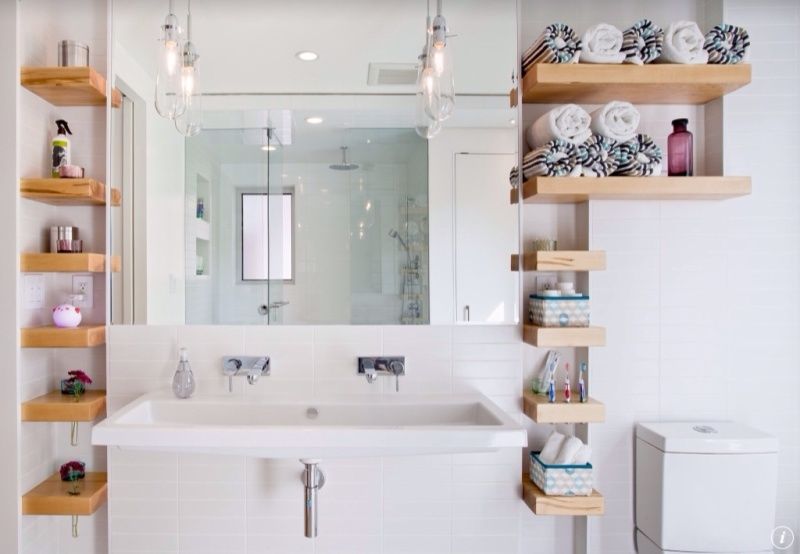 Se poate monta o polita de lemn unde va puteti pune prosoapele.