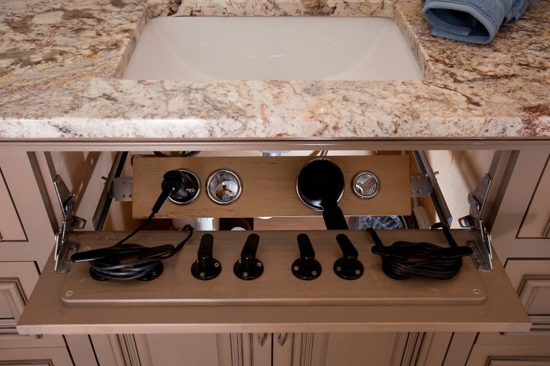 Sub chiuveta se pot amenaja locuri pentru a va depozita feonul sau alte obiecte electrice. De asemenea, mai exista si solutia atasarii unei masti de chiuvata prevazuta cu niste sertare, in care sa va puneti obiectele indispensabile.