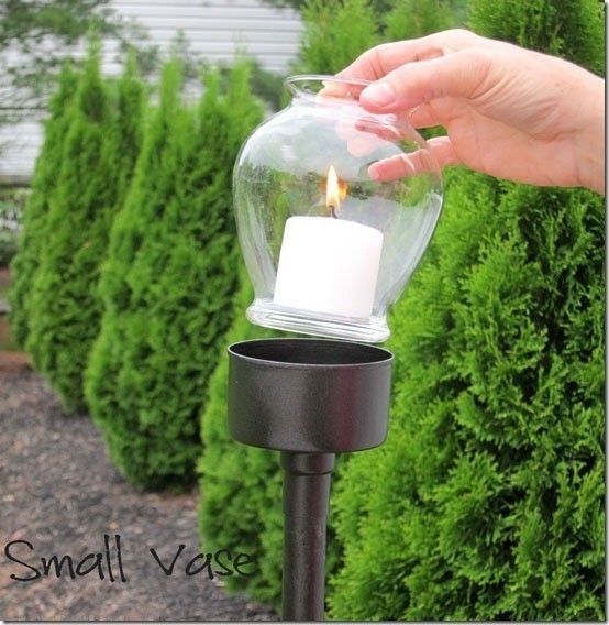 Poti construi cu mare usurinta o lampa pentru gradina dintr-o conserva de peste vopsita, o teava si un vas transparent pe care il ai in casa