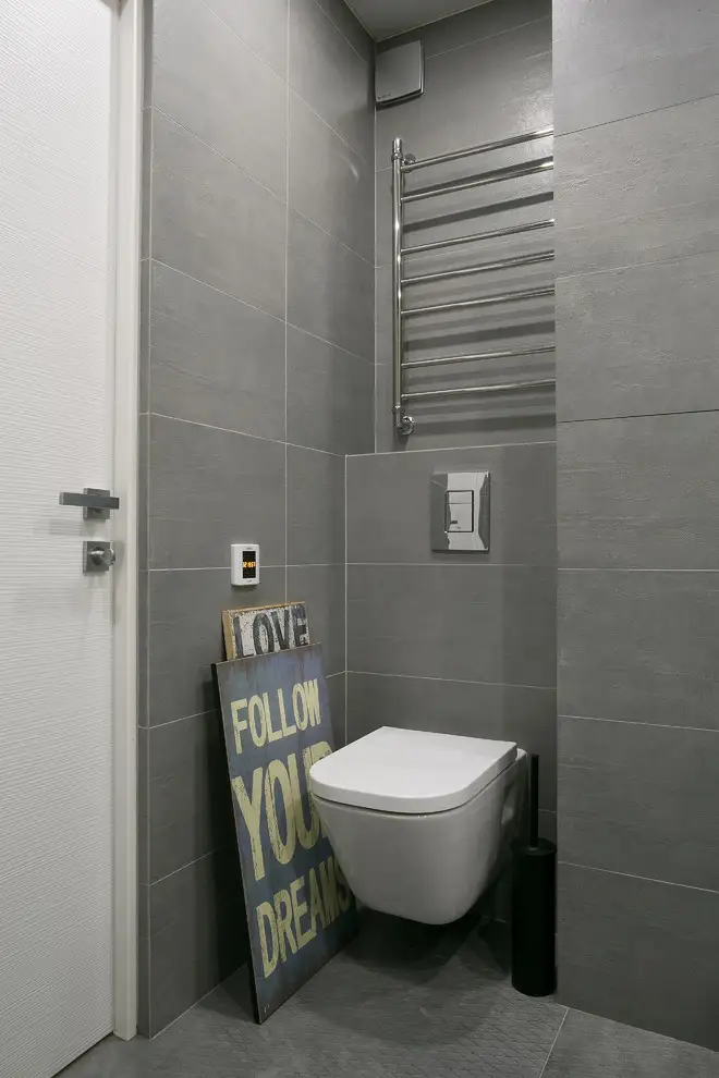In cazul iluminatului artificial spoturile, banda de led mascata si lampadarul sunt cele care valideaza ideea de minimalism ultra modern. Accesorizarea este una extrem de simpla, singurele obiecte cu rol ornamental fiind doua mingii argintii ce se gasesc asezate discret pe comoda aflata in fata coltarului.
