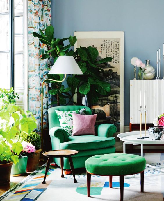 Schema de culori cu albastru si verde! Culoarea vedeta este verdele, iar albastru pal in fundal completeaza perfect un tablou inspirat de natura