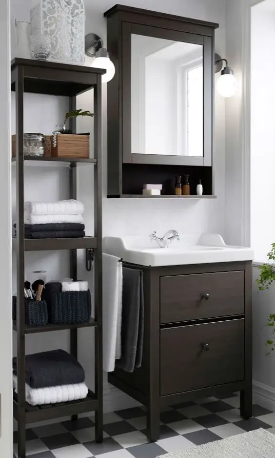 In final, ne dorim sa economisim spatiu, dar in acelasi timp sa completam prin functionalitate. Piesele de mobilier alese isi vor pastra calitatea estetica, insa vor fi folosite pentru a maximiza spatiile de depozitare din mica baie.