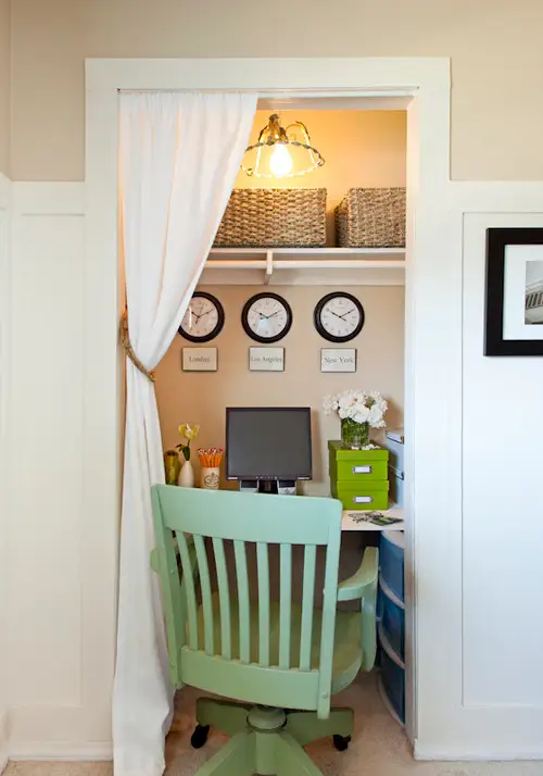 Intr-un apartament vom gasi cu siguranta un loc cat de mic pentru biroul nostru. In dulap. Chiar si aici ne putem organiza discret pentru a ne crea biroul de vis.
