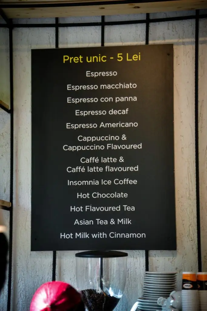De aici poti cumpara o cafea buna, un delicios caffee latte, un capuccino, o limonada racoritoare sau un cookie, pe care le poti lua la pachet (to go), la preturi decente.