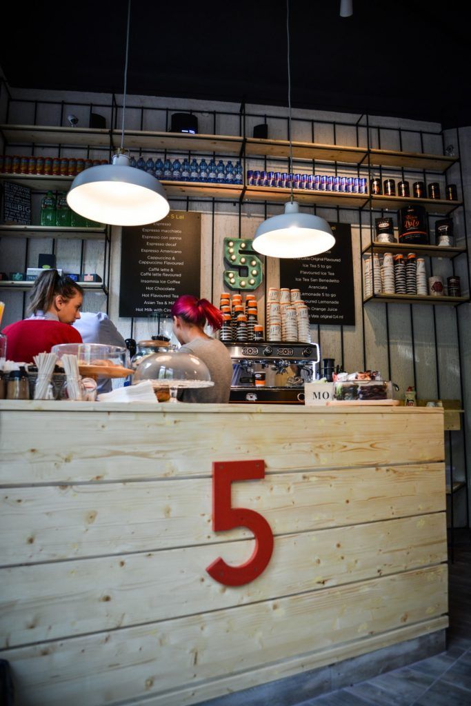 Fiecare spatiu 5 to go incearca sa-si adapteze designul zonei in care se afla, la acesta se adauga, in proportie de 60%, designul tipic cafenelelor 5 to go.