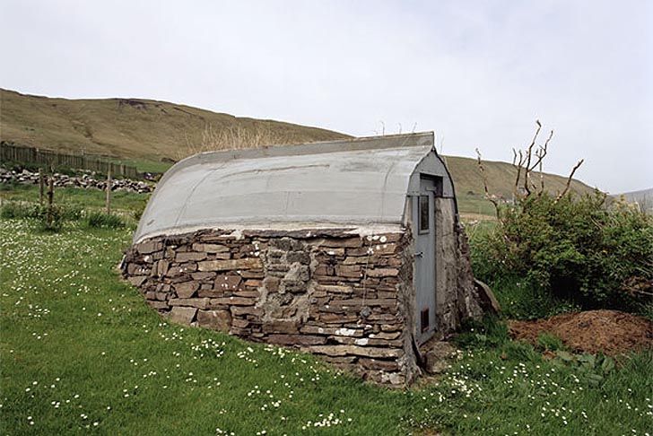 Localizat pe micuta insula Hoswick, in nordul Scotiei, aceasta cabanuta din piatra a fost construita numai cu roci gasite in zona si fragmente din barci care au naufragiat