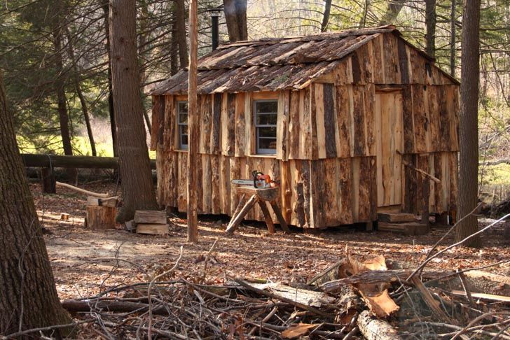 Dave Sinagugla a realizat un adapost mic, cochet si rustic, intr-o padure de pini din Hartford, Connecticut.