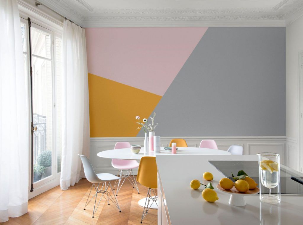 Portocaliul intr-o nuanta citrica, vibranta, se combina de minune cu decorul simplu, in patternuri geometrice. Asocierea cu albul impecabil si triunghiurile jucause creaza un perete pregatit pentru a aduce atmosfera de vara printr-un aspect perfect aliniat cu tendintele acestui anotimp.