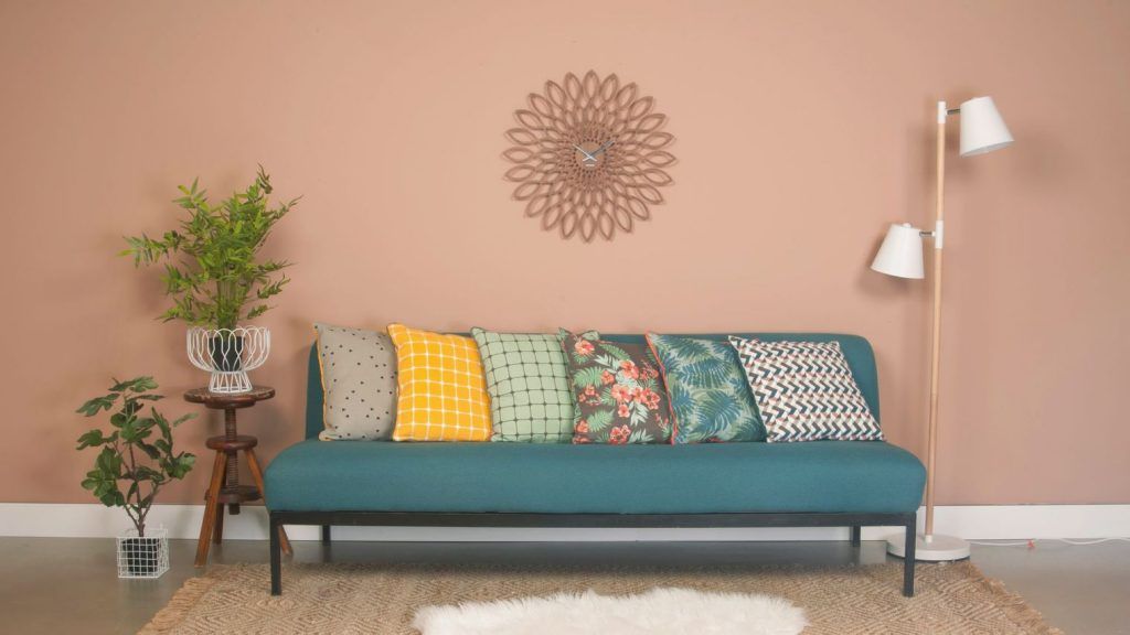 Rozul-corai este culoarea care evoca atat de bine spiritul verii si reprezinta fundalul perfect pentru accentele reci de culoare pe care reuseste sa le indulceasca, asa cum procedeaza aici cu albastrul turcoaz al canapelei din catifea.