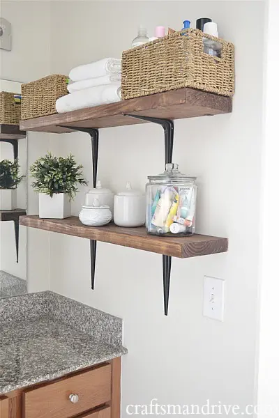 2 etajere montate pe perete vor prelua din obiectele necesare din baie perfect pentru o baie mica