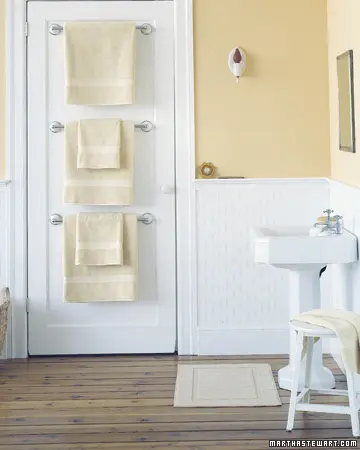Pe usa baii se pot asambla 3 sau chiar 4 suporturi agatatoare care se folosesc pentru prosoape. Acest lucru ofera organizare, dar si acces permanent, prosoapele fiind printre cele mai folosite si cele mai rulate obiecte din baie.