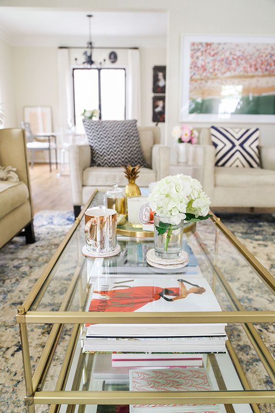 In living, opteaza pentru masute de cafea din sticla sau din alte materiale transparente. Pentru ca iti permit sa vezi prin ele, nu vor ocupa vizual nici spatiul din camera.