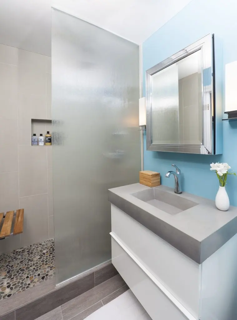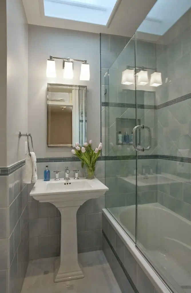 Pentru a optimiza spatiul unei bai mici, se recomanda inlocuirea cazii de baie cu o cabina de dus tip walk-in. Iti va ramane mai mult spatiu in baie pentru a aduce aici masina de spalat rufe sau mai mult spatiu pentru depozitare.