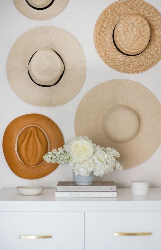 Colectie de palarii expusa pe perete