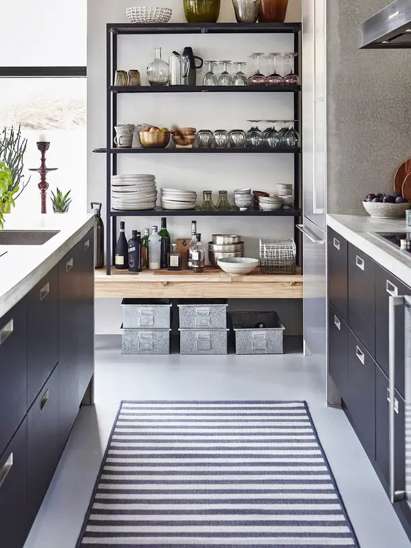 Un corp cu depozitare deschisa, pe verticala, format din mai multe rafturi va inlocui acele dulapuri pe care nu mai ai loc sa le aduci in bucatarie. In plus, fara corpuri masive, spatiul va parea mai aerisit.