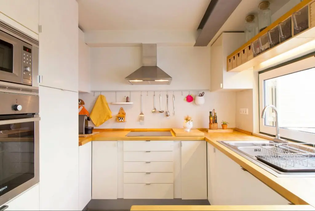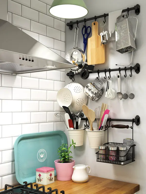 Profita de fiecare colt disponibil. Peretele de langa blatul de bucatarie poate fi locul excelent pentru a monta o bara pe care sa asezi cele mai utilizate ustensile. Astfel le ai la indemana si le poti accesa foarte usor atunci cand ai nevoie de ele. In aceeasi masura, orice perete liber din bucatarie poate fi foarte util pentru depozitarea pe verticala.