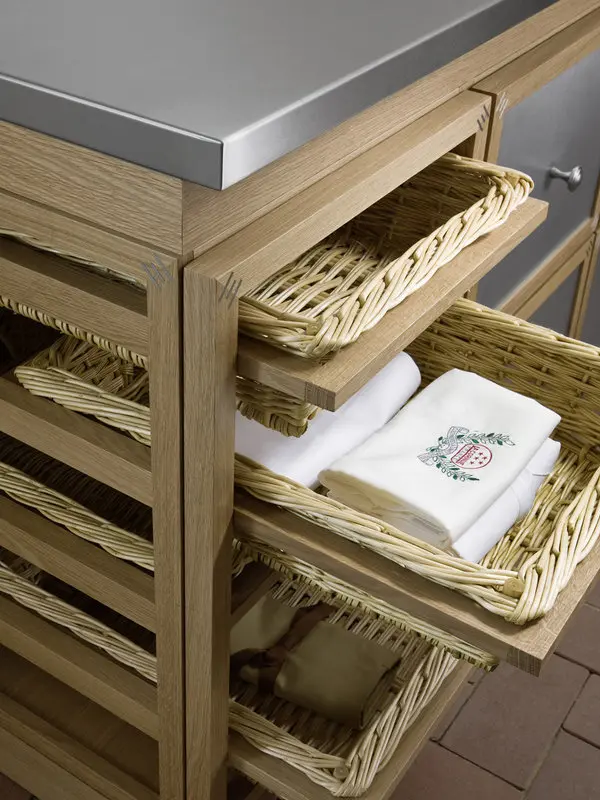 Elibereaza spatiul din sertare sau dulapuri apeland la o insula de bucatarie mobila sub forma unui carucior cu spatii de depozitare integrate. Sunt incapatoare si le poti folosi pentru a aseza aici oale mari, vesela sau pahare. In plus, iti ramane si loc pe blat pentru gatit.
