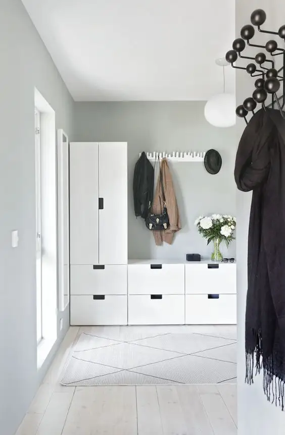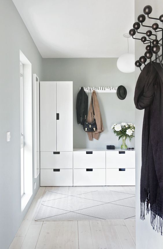 Fii original! Iti plac culorile? Pai hai sa afle toata lumea asta, chiar de la intrare. 2 sau 3 dulapuri colorate, eventual cu adancimi diferite pentru variate tipuri de depozitare. Astfel, spatiul nu va parea aglomerat cu hainele si incaltamintea folosite zi de zi, toate fiind asezate ordonat in dulapuri. Culorile vor atrage privirea si iti vor oferi o perspectiva asupra personalitatii tale.