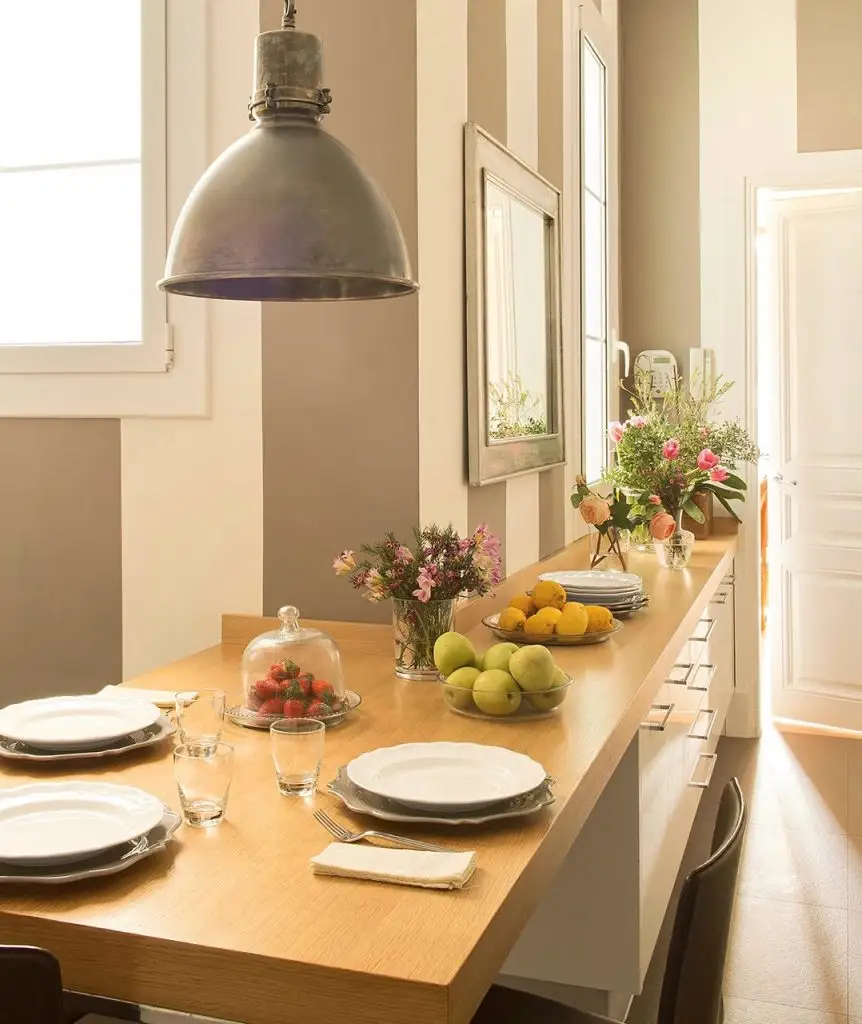 Ne place sa luam masa in aer liber sau cat mai aproape de exterior, mangaiati de lumina naturala. Dar daca nu ai suficient spatiu pentru a amenaja un astfel de loc in balcon, ce-ar fi sa asezi masa la fereastra, spre iesirea in exterior. La perete se poate fixa o bancuta cu perne moi si restul scaunele necesare.