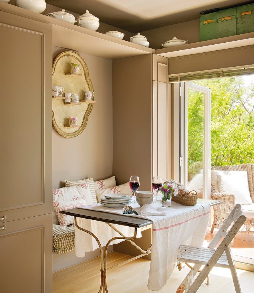 Ne place sa luam masa in aer liber sau cat mai aproape de exterior, mangaiati de lumina naturala. Dar daca nu ai suficient spatiu pentru a amenaja un astfel de loc in balcon, ce-ar fi sa asezi masa la fereastra, spre iesirea in exterior. La perete se poate fixa o bancuta cu perne moi si restul scaunele necesare.
