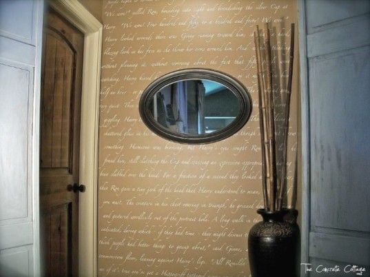 Harry Potter este iubit de multi fani, atat de mult incat unii au integrat paragrafe din cartile de vrajitorie intr-un fototapet montat pe peretele de pe hol. Interesant mod de a lectura.